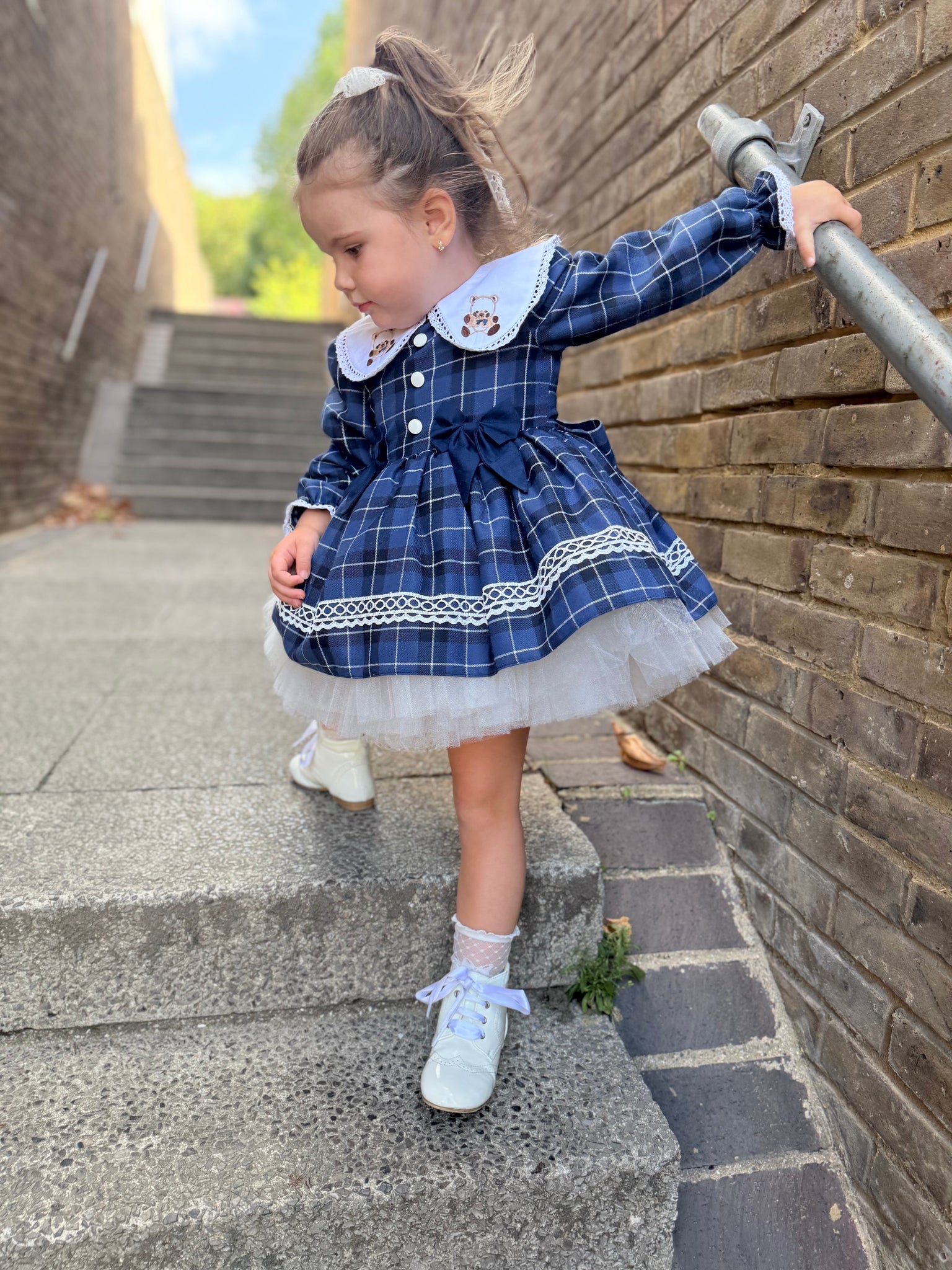 Beautifully crafted cotton dress with puff skirt fitted with tulle for that extra puffiness. The timeless teddy bear embroidery is so cute making the dress extra special. The dress is fully lined for extra comfort.